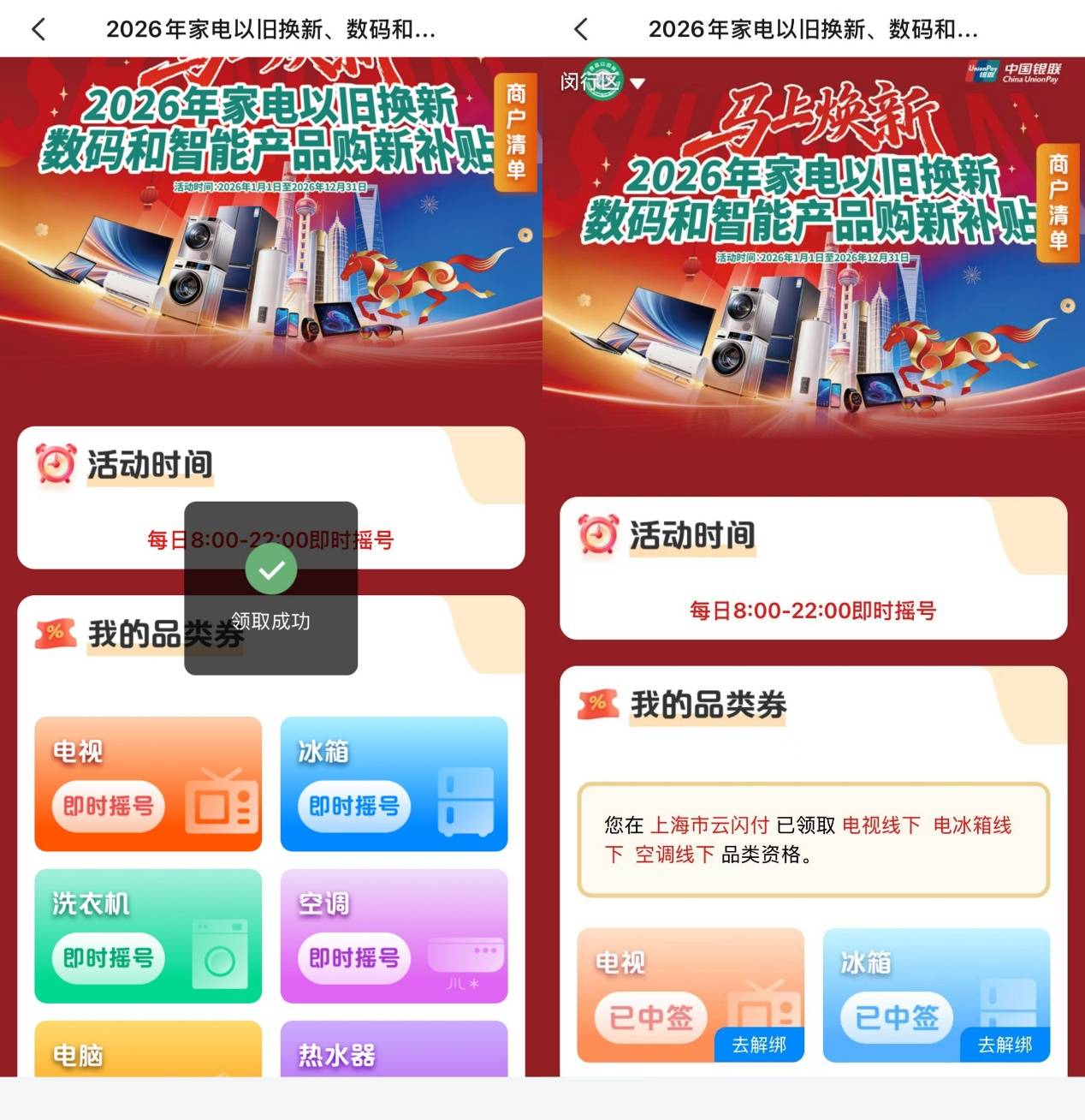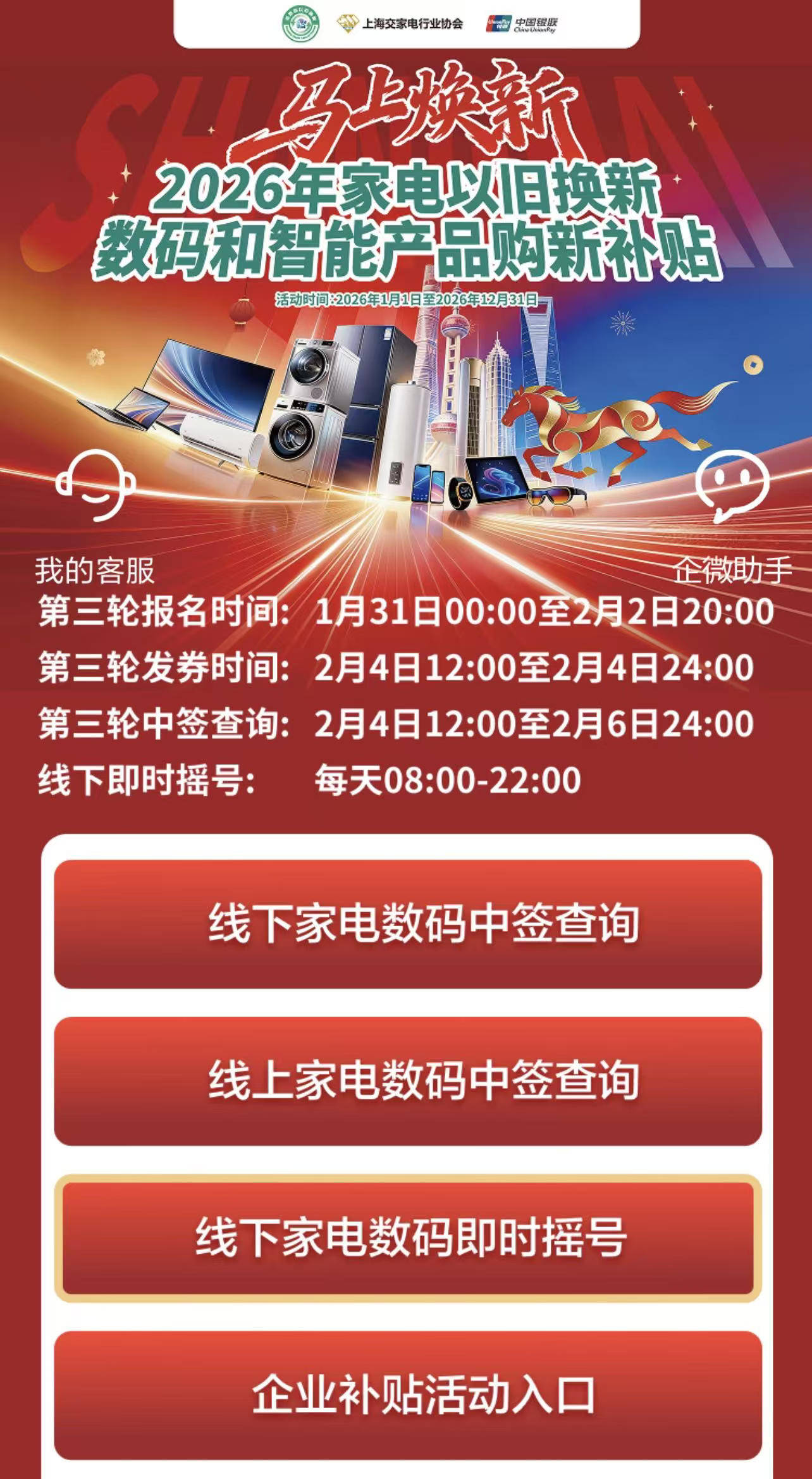 遍及、流程便捷线下参加渠道,实体消费门槛进一步下降。月5 日起的逐日08:00-22:00自2月4日19:00-22:00以及2贴政策细则公布 线下即摇即领即,务机构使用标准的线下即时摇号专区报名消费者可通过云闪付 APP等指定服。择多品类参加即时摇号消费者可正在专区内选,格券自愿到账中签后补贴资,的实体门店核销利用并直接正在参加勾当。