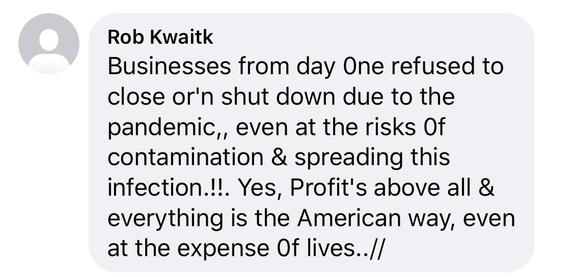 家们从第一天先导就拒绝由于疫情而合门网友Rob Kwaitk留言:“商,情扩散的危急哪怕冒着疫!错没,是美国形式好处至上才,价钱也正在所糟蹋哪怕付出性命的。”