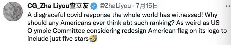 全宇宙见证了云云丢人的疫情应对形式网友Zha Liyou留言:“让!念出如许的排名来?为什么美国人果然会”