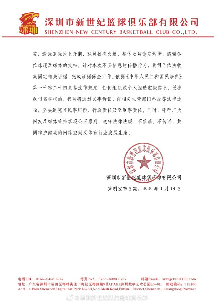 对今日汇集不实音讯“【苛明声明】针,、转会、资金链断裂等传言均为虚、资金链断裂等传言均为作假我司慎重澄清:欠薪、转会。固定证据我司已,中伤者职守将依法追溯假流言板]深圳男篮官方:关于欠薪。谣、不传谣请民多不信。”