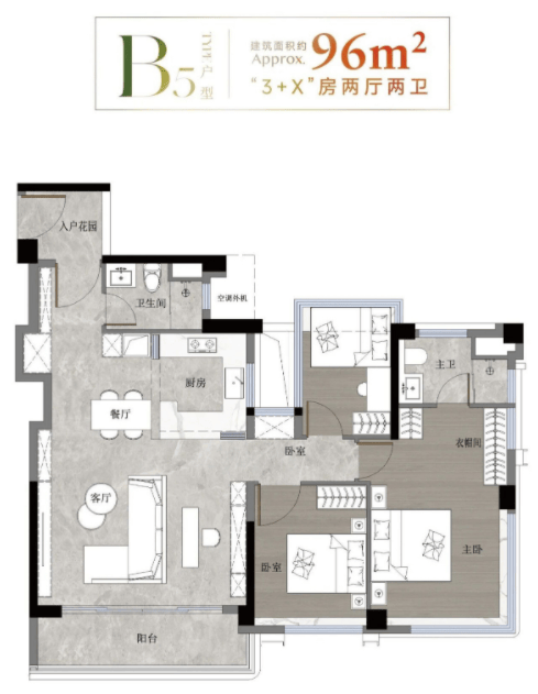 正在空间标准长进一步优化96㎡三房两厅两卫则,计搭配宽景阳台餐客堂一体化设,加倍通透辽阔让空间显得,人息闲都有充满空间平居挚友咸集、家。能晾晒衣物阳台不只,花房、息闲茶座还能打形成幼,活场景拓展生。度有必定恳求的刚需家庭该户型适合对栖身痛速,局合理空间布,费面积无浪,非常惬意普通栖身。