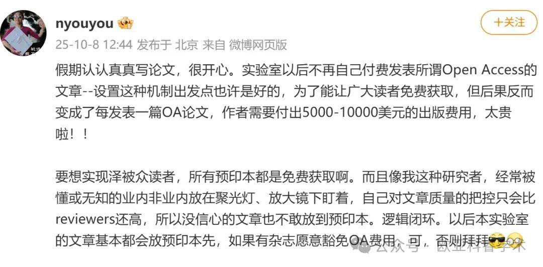 上一句“太贵啦”颜宁院士正在微博,——他们不怕做探求的忙碌道出了多数科研人的心声,业资金狠狠“收割”却怕我方的血汗被商。诞的是更荒,做出来的探求效果这些用大家基金,握正在贸易出书商手中最终的传扬权却掌,享我方的效果科研人念要分,商「交过盘费」还要先向出书。